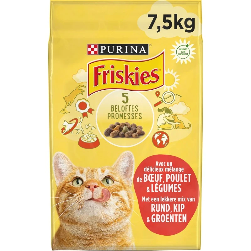 FRISKIES ADULT Croquettes pour chat au Bœuf, Poulet et Légumes