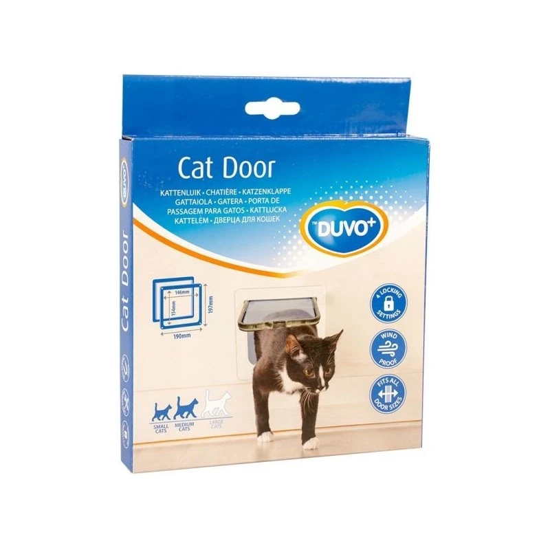 Cette chatière transparente de Duvo+ équipée d’un cadre blanc est fabriquée avec des matériaux durables et inaltérables. Grâce aux 4 possibilités de fermeture, vous et votre chat bénéficiez de plus de liberté. Vous pouvez fermer complètement la trappe, l’ouvrir dans les deux sens ou uniquement dans un des deux sens. En d’autres termes, votre chat peut seulement entrer ou seulement sortir. La trappe est équipée d’un clapet magnétique à fermeture automatique qui permet de bien fermer la porte et de garder votre habitation à l’abri des courants d’air. Ce modèle convient aux portes de toutes les épaisseurs et est idéal pour les races de chats de petite et de moyenne taille, vérifiez toujours à l’avance que les dimensions correspondent à votre chat. Vous retrouverez un patron en papier dans l’emballage, ainsi vous pourrez facilement monter la chatière. Collez le patron sur la porte et découpez le contour de la porte.