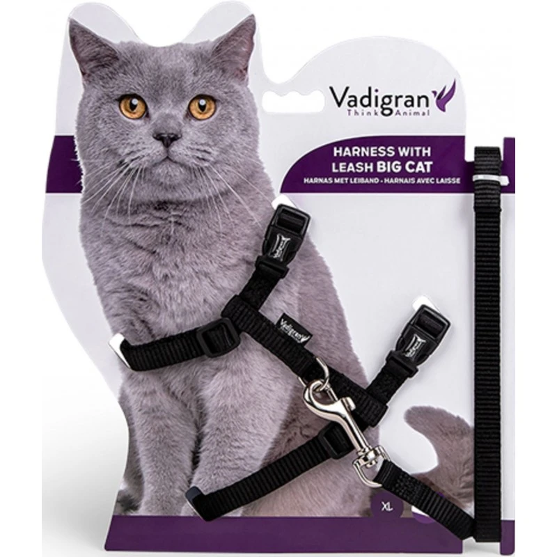 Harnais+Laisse Grand Chat Noir 34/57cm+120cm – Vadigran