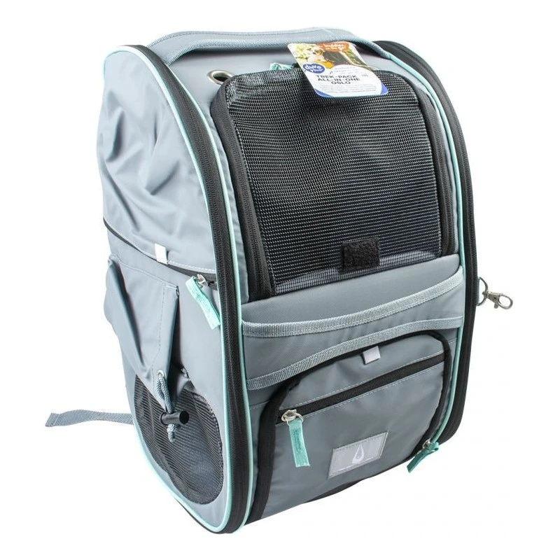 Ce sac à dos de trekking super léger et confortable All-in-One Oslo `Buddies on the gooo` vous permet d`emmener votre chien ou chat partout où vous allez, même à vélo. Ce sac de qualité supérieure est muni de compartiments de rangement pratiques et même d`un compartiment pour garder des aliments ou de l`eau au frais. Les trous de ventilation à l`avant et sur les côtés du sac font que votre animal de compagnie bénéficie en permanence d`une quantité suffisante d`air frais. Vous pouvez ouvrir facilement ce sac à dos pratique grâce aux deux fermetures éclair latérales. Le sac est également muni d`une fixation pour collier, d`une housse de protection contre la pluie et d`une sangle pour y fixer un harnais.